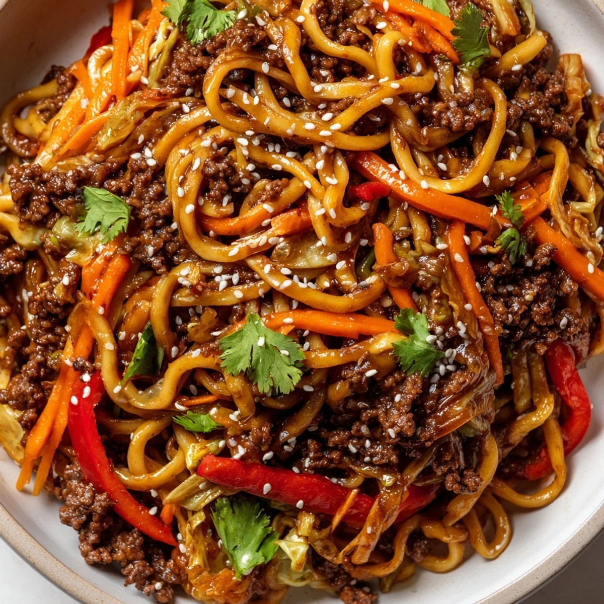 This satisfying dish brings together browned ground beef, julienned vegetables, and tender egg noodles coated in a savory blend of soy, oyster, and hoisin sauces. Ready in just 35 minutes, it's ideal for hectic weeknights when you want something hearty yet quick. The sauce balances salty, sweet, and subtle heat while fresh ginger and garlic add aromatic depth.