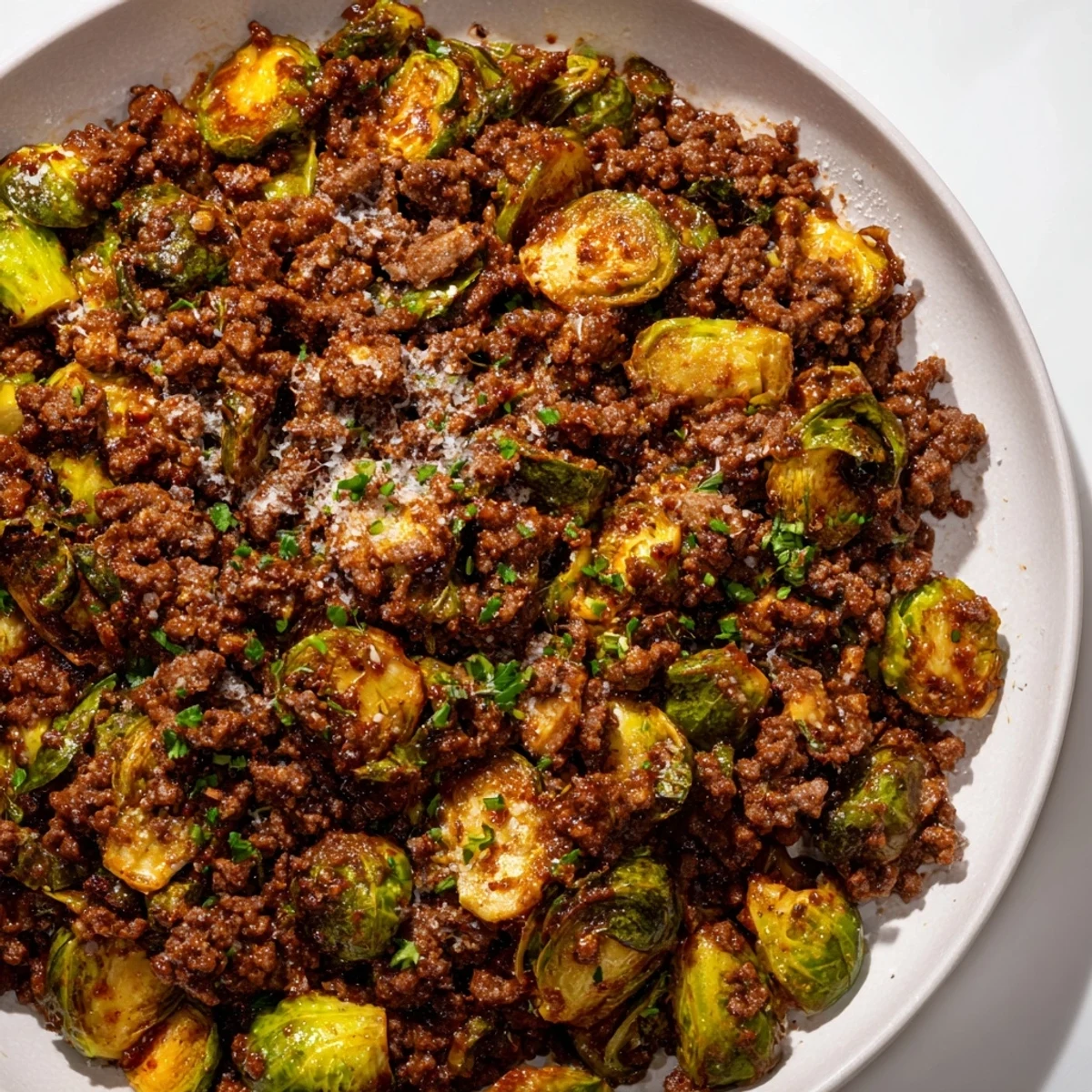 This satisfying skillet combines lean ground beef with caramelized Brussels sprouts in a savory soy-based sauce. Ready in just 30 minutes, it delivers a complete meal with tender-crisp vegetables, aromatic garlic and onions, and perfectly seasoned beef. The dish balances protein and fiber while remaining naturally low-carb and gluten-free adaptable.