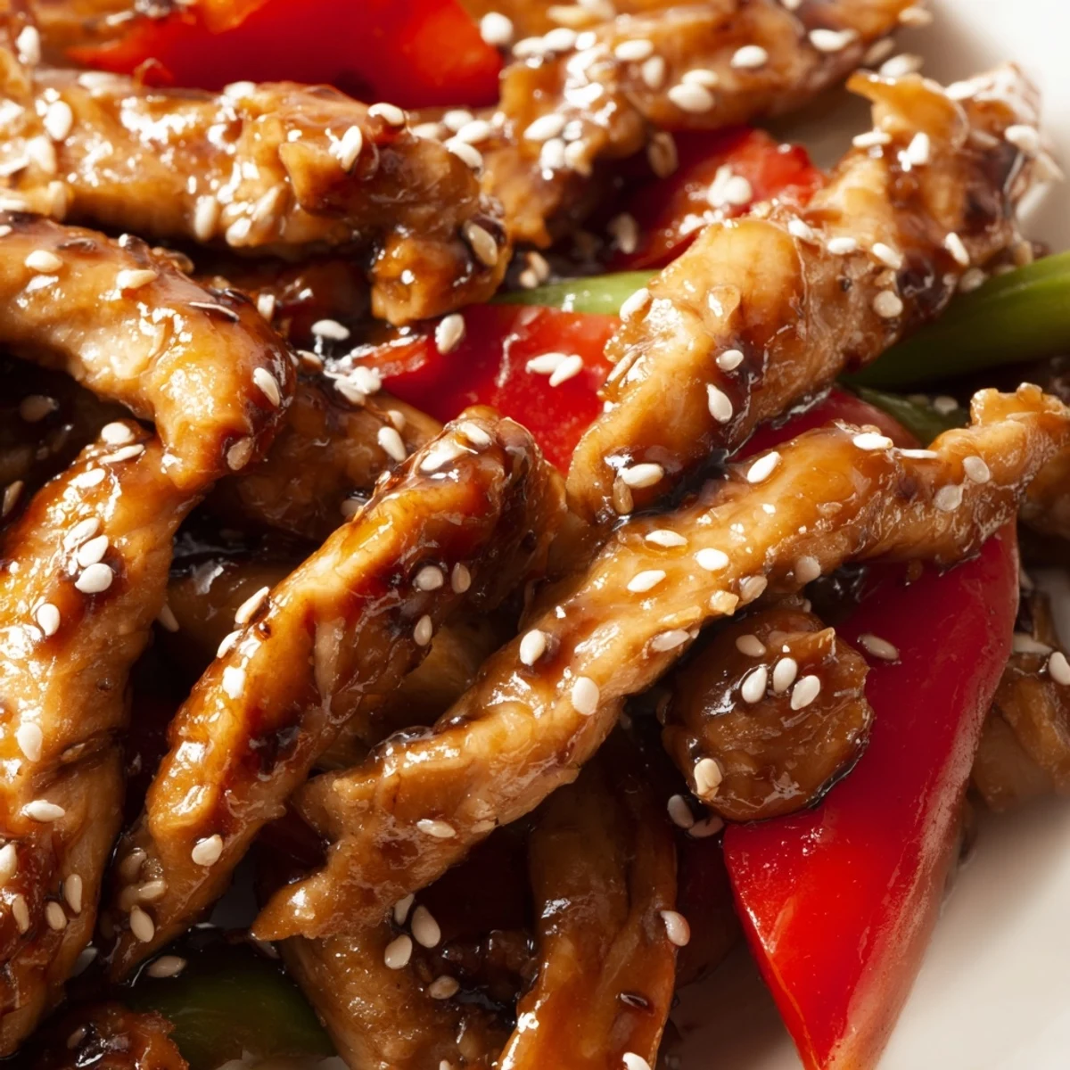 This vibrant stir fry combines thinly sliced chicken breast with colorful vegetables like bell peppers, broccoli, carrots, and snap peas. The star is the homemade sauce featuring soy sauce, toasted sesame oil, honey, and rice vinegar, creating the perfect balance of savory and sweet. Everything cooks in a hot wok until crisp-tender, then gets coated in the thickened glossy sauce. Garnish with sesame seeds and fresh cilantro for restaurant-quality results at home.