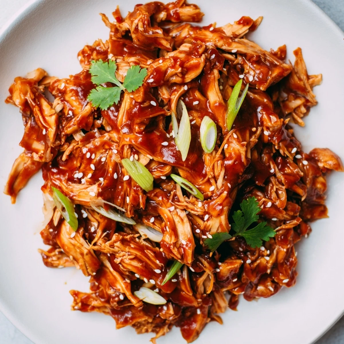 This hands-off dish features boneless chicken breasts slow-cooked for 4-5 hours in a glossy sweet chili sauce infused with fresh garlic, ginger, and sesame oil. The result is tender, juicy meat that shreds easily and absorbs all the sweet-spicy flavors.